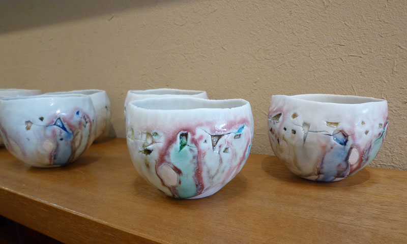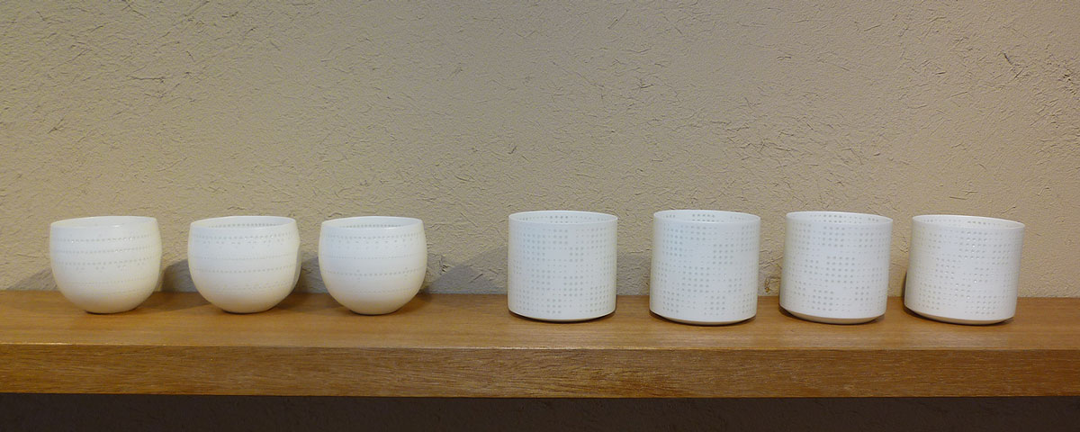 | 多治見市陶磁器意匠研究所で学んだ5人を中心とした、8月恒例の酒器展です。 川端さん、新里さんは岐阜(瑞浪と土岐)で、今泉さんは埼玉県日高市、竹内さんは兵庫県加東市、鈴木さんは群馬県高崎市、そして田淵さんは徳島県高松市で それぞれ制作されていますが、ヨーロッパの巡回展等でよくご一緒に活躍されている仲間です。 |