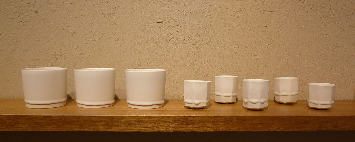 | 白磁徳利:10,800yen ぐいのみ:各8,640yen (右から2、5番目は 在庫あります。) | 白磁カップ:各5,400yen 面取ぐいのみ:各7,560yen | |||||||||||||||||||||||||||||||||||||||||||